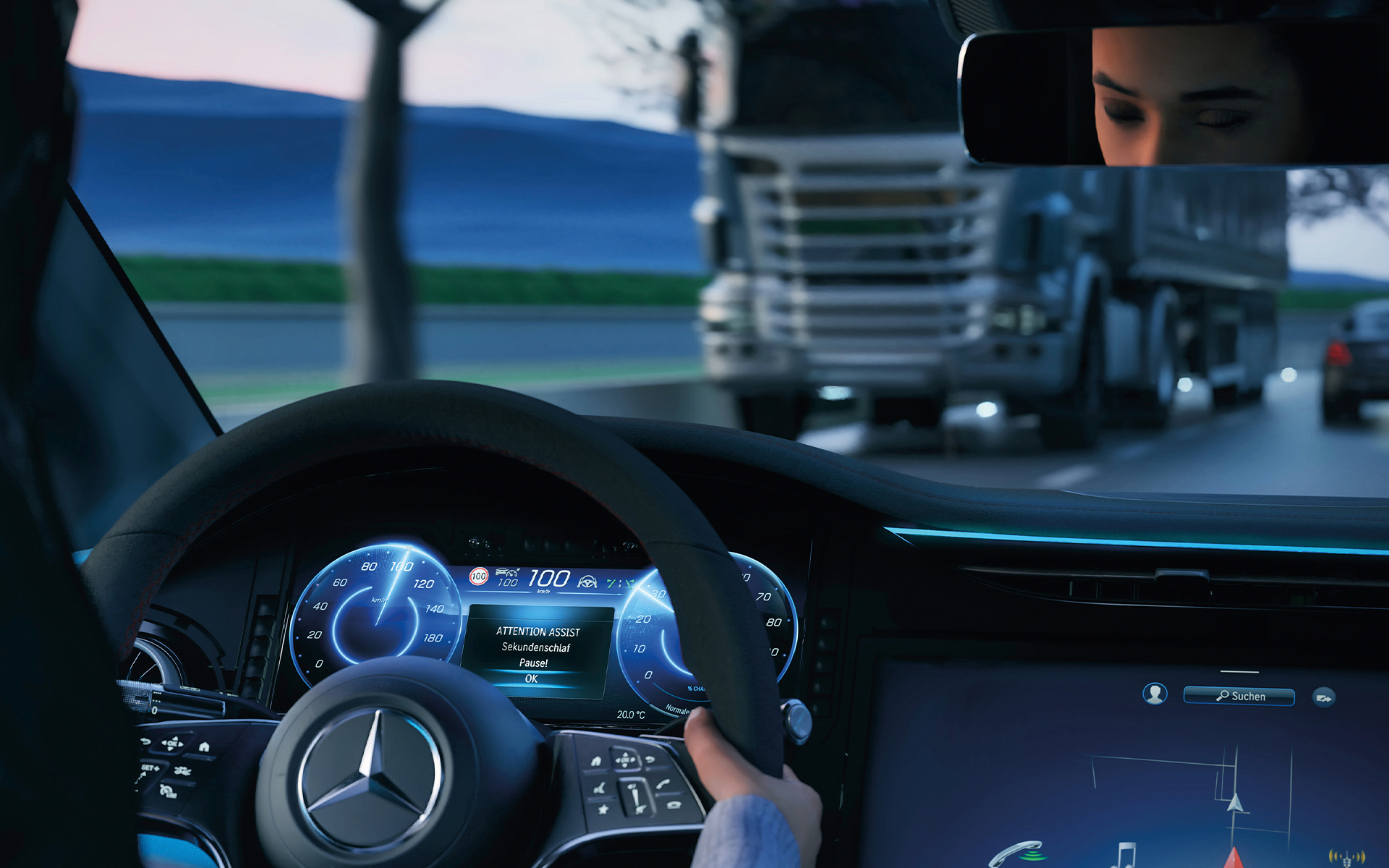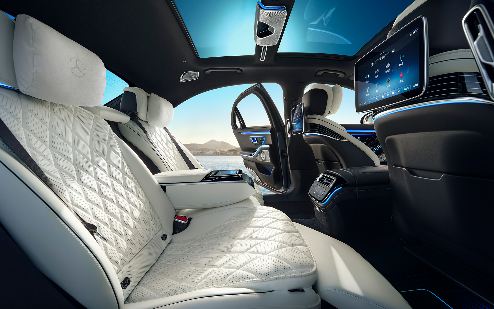 为了给您带来细腻的数字豪华体验,我们对MBUX超联屏(MBUX Hyperscreen)进行了精细打磨。为了确保其完美成型,我们将56英寸的玻璃在约650°C的高温下进行加工。同时,为了消除屏幕反光,这块玻璃被镀上了六层极薄的金属氧化物,让您即使在强烈阳光下,也能轻松阅读与操作。